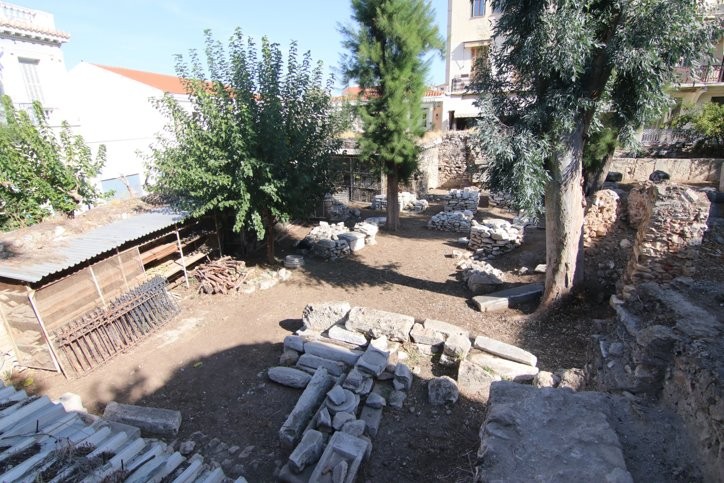 Το δυτικό του τμήμα ανασκάφηκε μερικώς το 1914, οπότε κατεδαφίστηκαν αρκετά τμήματα του Μεντρεσέ Αθηνών. Η ανασκαφή αποκάλυψε τμήμα του υστερορωμαϊκού τείχους στα βόρεια του χώρου, με το οποίο συνδέεται και κάθετο σκέλος που διασχίζει κατά τον άξονα βορρά-νότου το διαμορφωμένο ακίνητο.